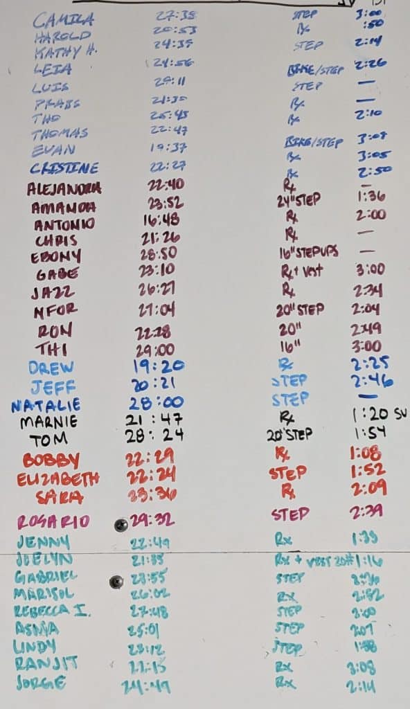 21 burpee box jump overs, 24/20