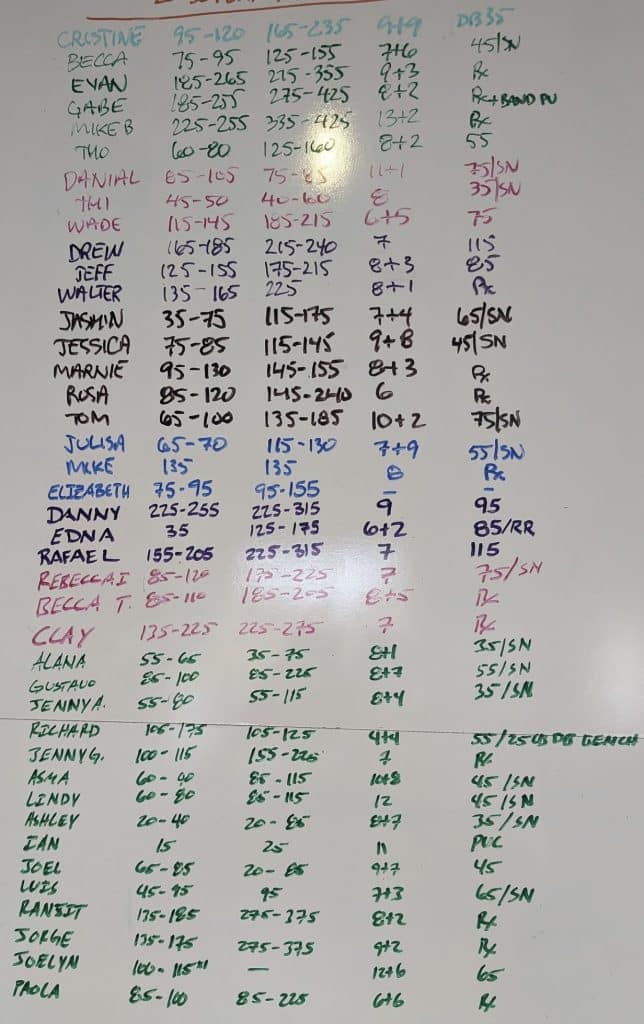 7 hang power cleans, 135/95